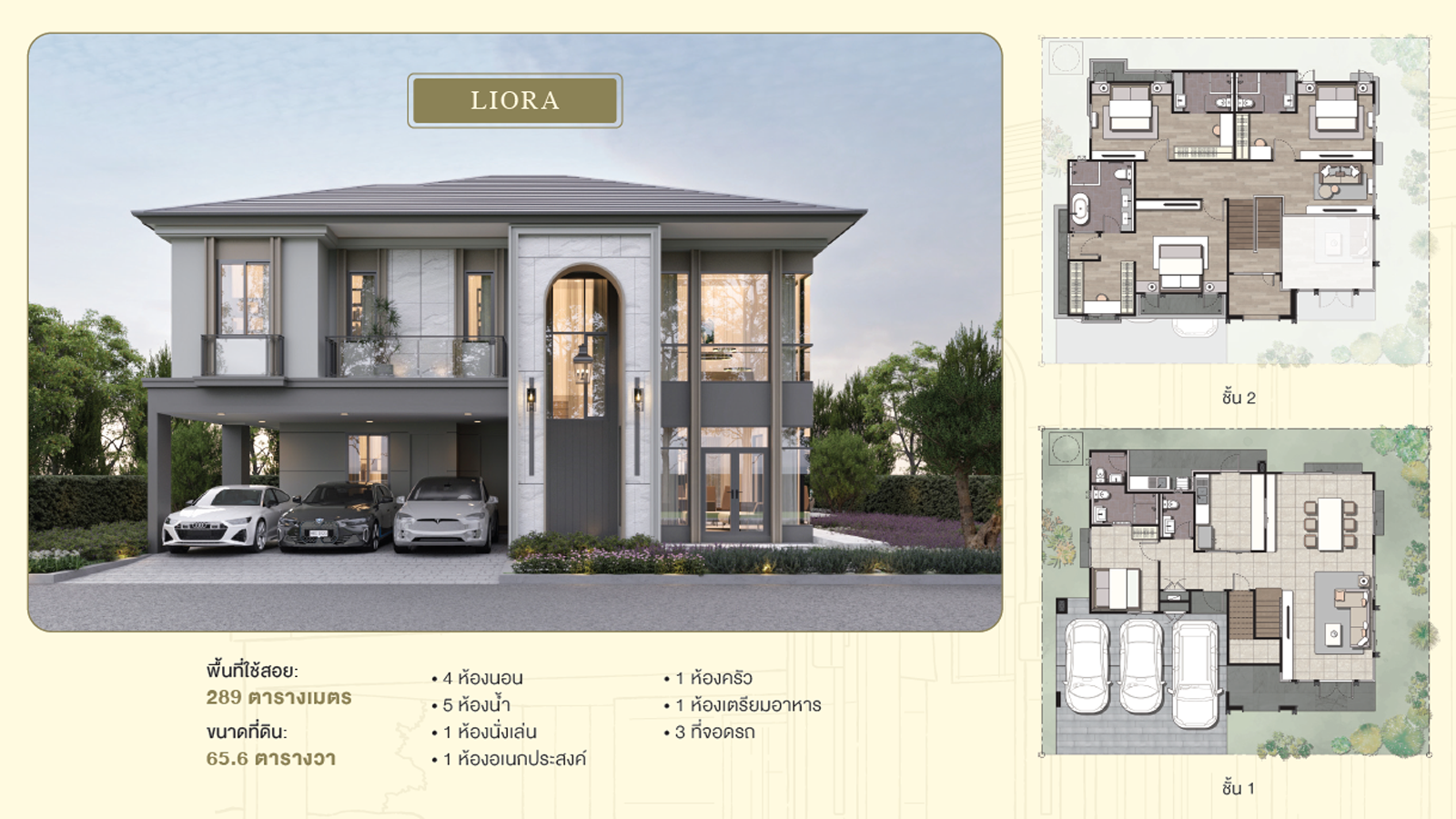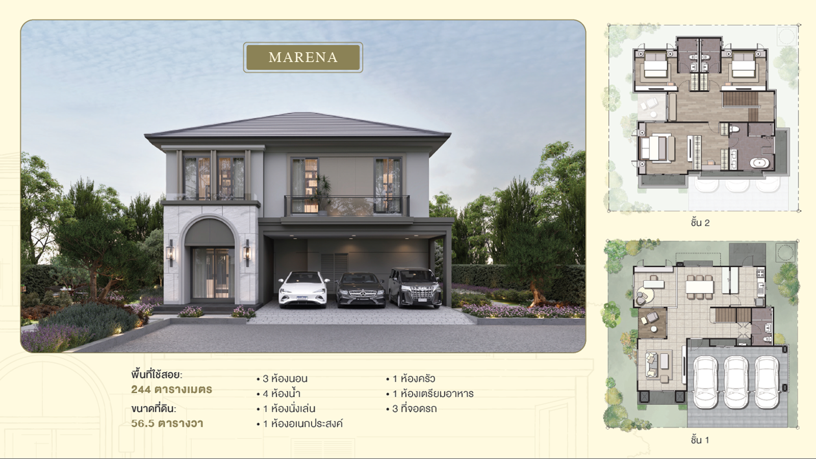 โดดเด่นด้วยพื้นที่หน้ากว้างและที่จอดรถถึง 3 คัน